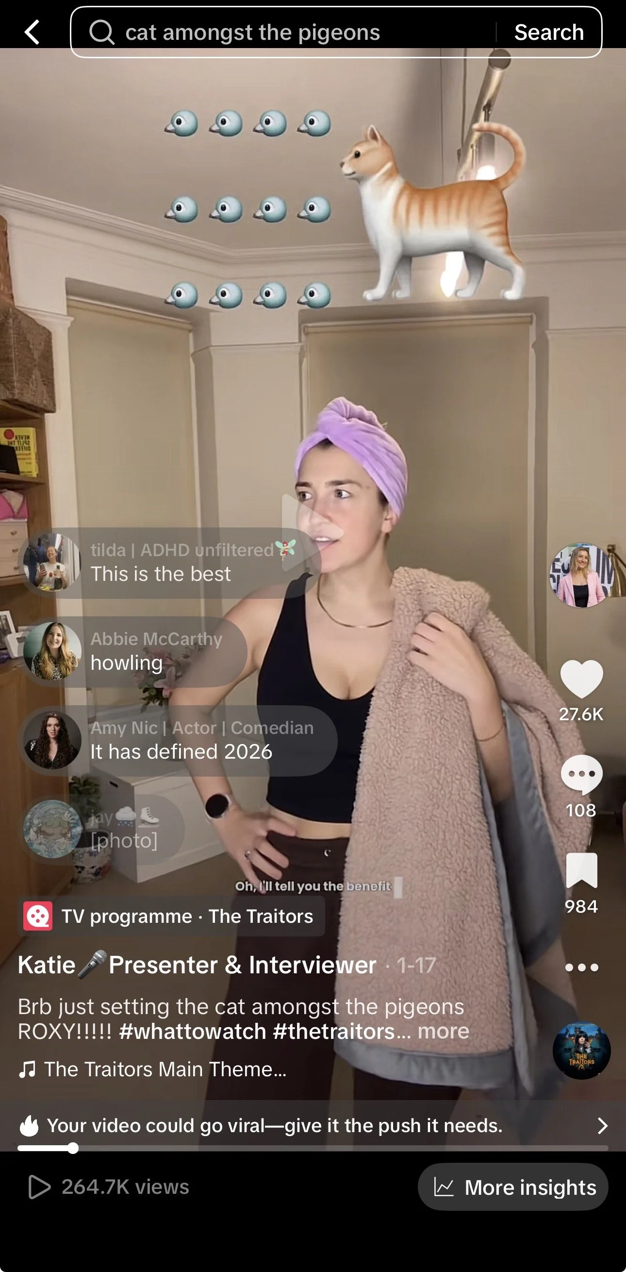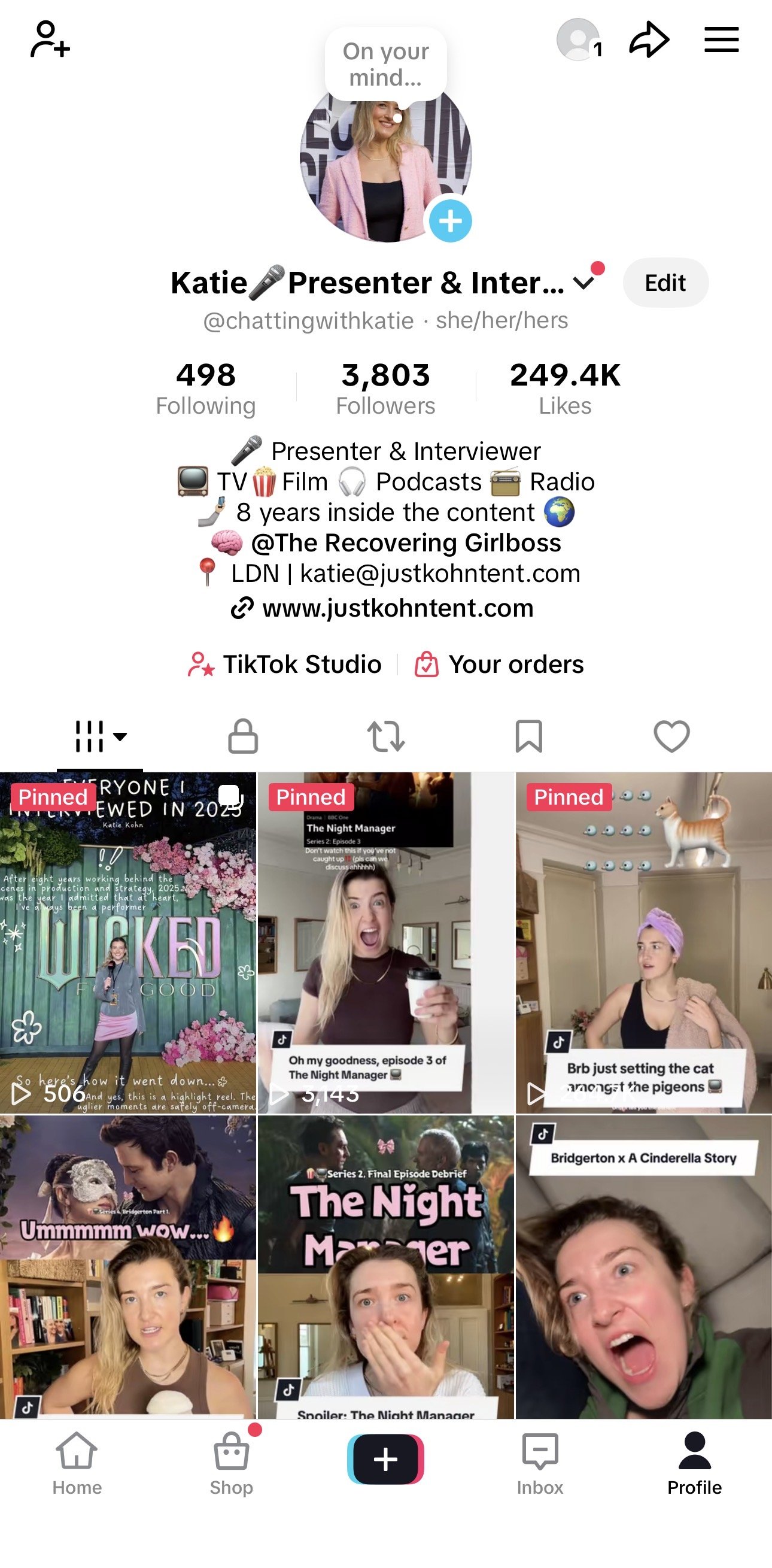 Alongside my freelance presenting work, I create and present Chatting With Katie, my entertainment-led platform covering TV, film, podcasts and the content world. My commentary reaches hundreds of thousands of viewers, including the audiences and talent behind the shows themselves.
